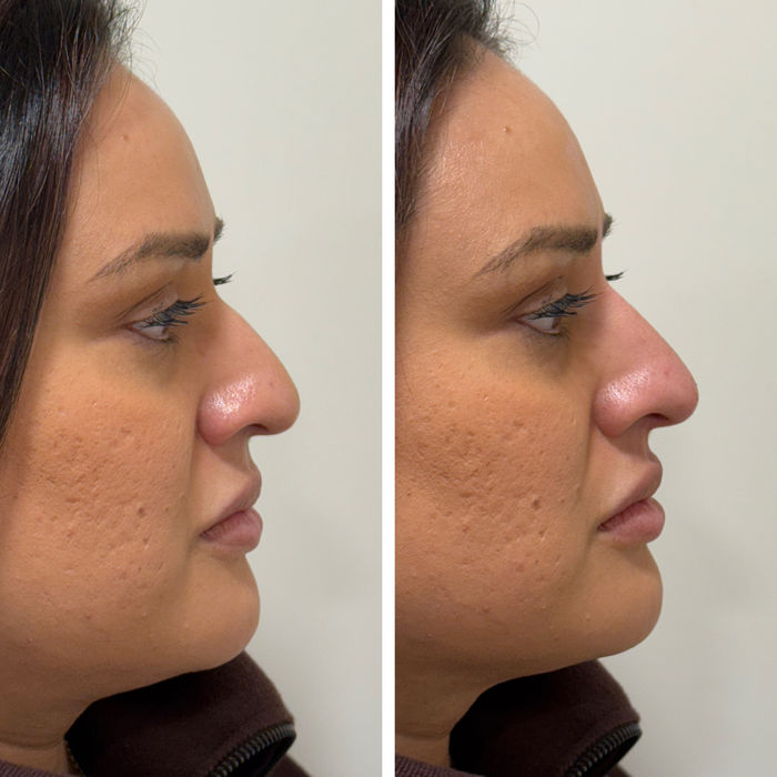 By harmonising the nose with the chin, lips, and jawline, treatment improves overall facial proportions and balance.